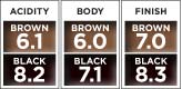 The numbers written in the coffee tasting tables represent the level of acidity, the body and the finish on a scale of 1 to 10.