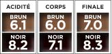 Les chiffres inscrits dans les tableaux de dégustation des cafés représentent le niveau de l’acidité, de corps et de la finale sur une échelle de 1 à 10.